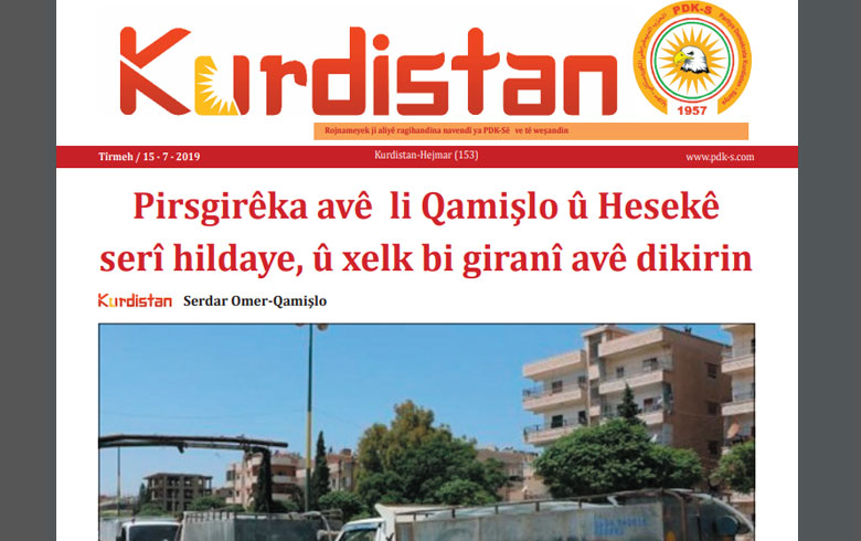 Rojnameya Kurdistan - 153 - Kurdi Jul 14 2019 Rojnameya Kurdistan - 153 - Kurdi Li vir bixwînin ku bêtir bixwînin Related Topics 32 sal bi ser şehîdbûna Pêşmerge Elî Omer Xelîl re derbas dibin Efrîn.. Dezgeha Xêrxwaziya Barzanî xizmetguzariyên pizişkî pêşkêş dike Amerîka daxwazê ji Israîl û Hizbulah dike pabendî biryarên navdewletî bibin Îraqê 175 malbatên xwe ji kampa Holê vegerand
