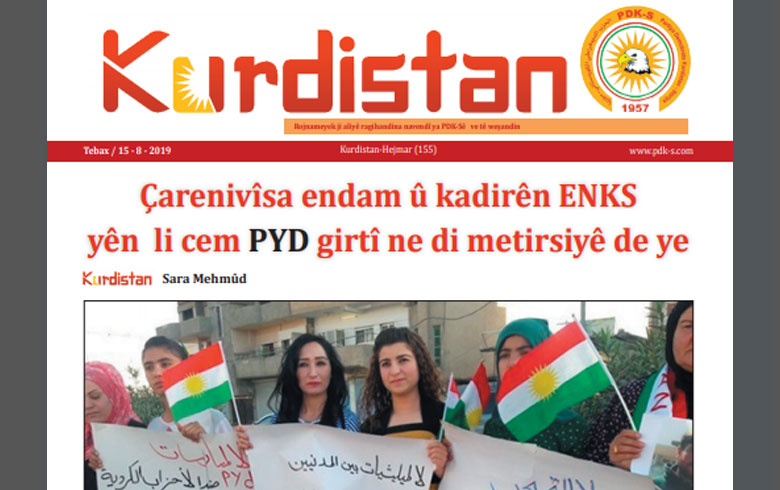 Rojnameya Kurdistan - 155 - Kurdi Aug 14 2019 Rojnameya Kurdistan - 155 - Kurdi Li vir bixwînin ku bêtir bixwînin Related Topics 32 sal bi ser şehîdbûna Pêşmerge Elî Omer Xelîl re derbas dibin Efrîn.. Dezgeha Xêrxwaziya Barzanî xizmetguzariyên pizişkî pêşkêş dike Amerîka daxwazê ji Israîl û Hizbulah dike pabendî biryarên navdewletî bibin Îraqê 175 malbatên xwe ji kampa Holê vegerand