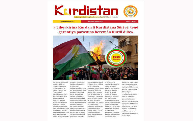Rojnameya Kurdistan - 242 Kurdî Apr 02 2023 Rojnameya Kurdistan - 242 Kurdî Li vir bixwînin ku bêtir bixwînin Download Related Topics 32 sal bi ser şehîdbûna Pêşmerge Elî Omer Xelîl re derbas dibin Efrîn.. Dezgeha Xêrxwaziya Barzanî xizmetguzariyên pizişkî pêşkêş dike Amerîka daxwazê ji Israîl û Hizbulah dike pabendî biryarên navdewletî bibin Îraqê 175 malbatên xwe ji kampa Holê vegerand