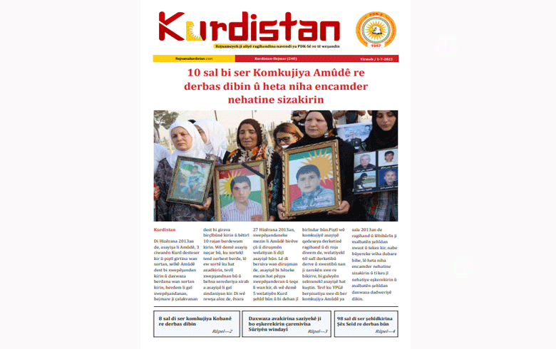 Rojnameya Kurdistan - 248 Kurdî Jul 02 2023 Rojnameya Kurdistan - 248 Kurdî Download Related Topics 32 sal bi ser şehîdbûna Pêşmerge Elî Omer Xelîl re derbas dibin Efrîn.. Dezgeha Xêrxwaziya Barzanî xizmetguzariyên pizişkî pêşkêş dike Amerîka daxwazê ji Israîl û Hizbulah dike pabendî biryarên navdewletî bibin Îraqê 175 malbatên xwe ji kampa Holê vegerand