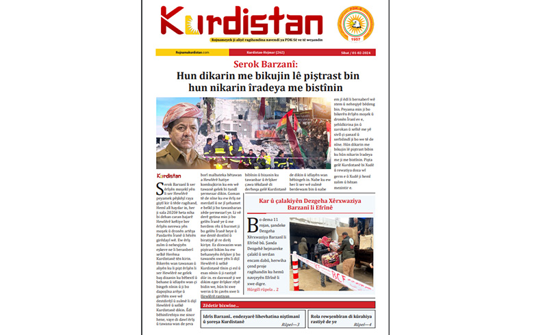 Rojnameya Kurdistan bi hijmara 262 beşê Kurdî derket