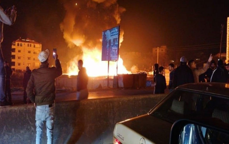 إحراق مخيم للاجئين السوريين في لبنان